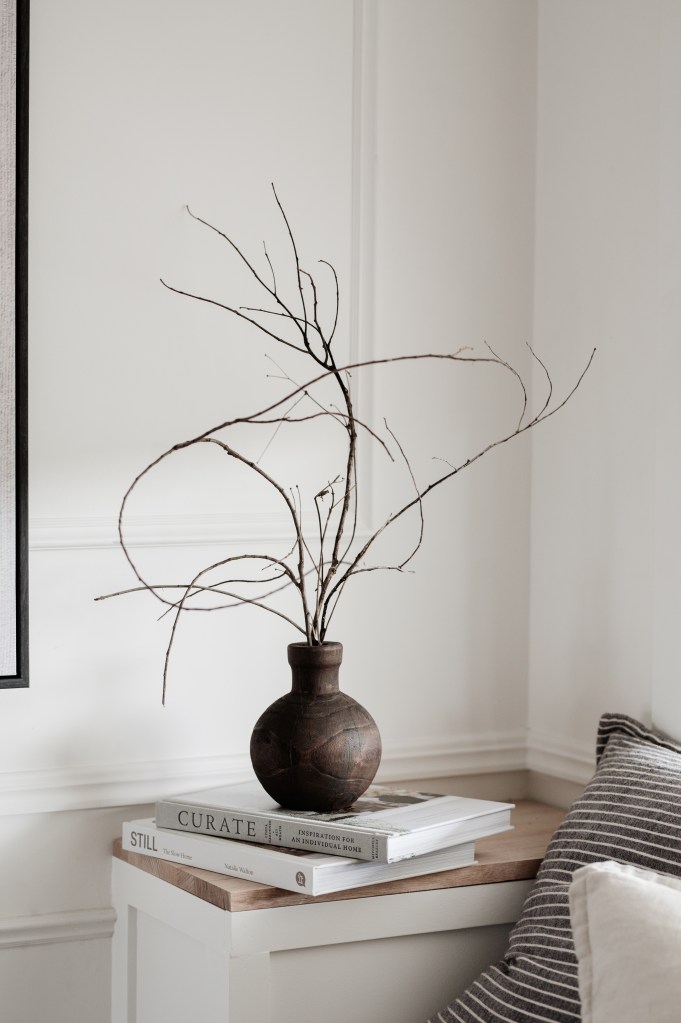 Branches , wildflowers , seed pods , herbs , grasses, or even fallen pieces of drift wood. Natures offerings , endlessly beautiful , and the best part its free . Let’s be honest the cost of styling homes has gone through the roof post COVID among other things . Prices for simple decor are often outrageous , while cheaper items lack longevity and quickly break . For me I would rather add in the variety of both found and brought . Forage on our property or wander through op shops.